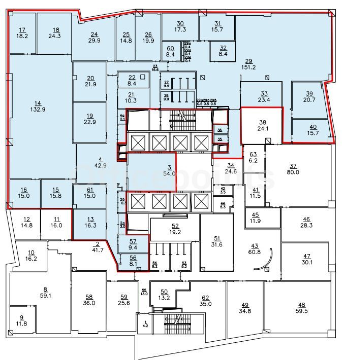 • Общая арендуемая площадь здания: