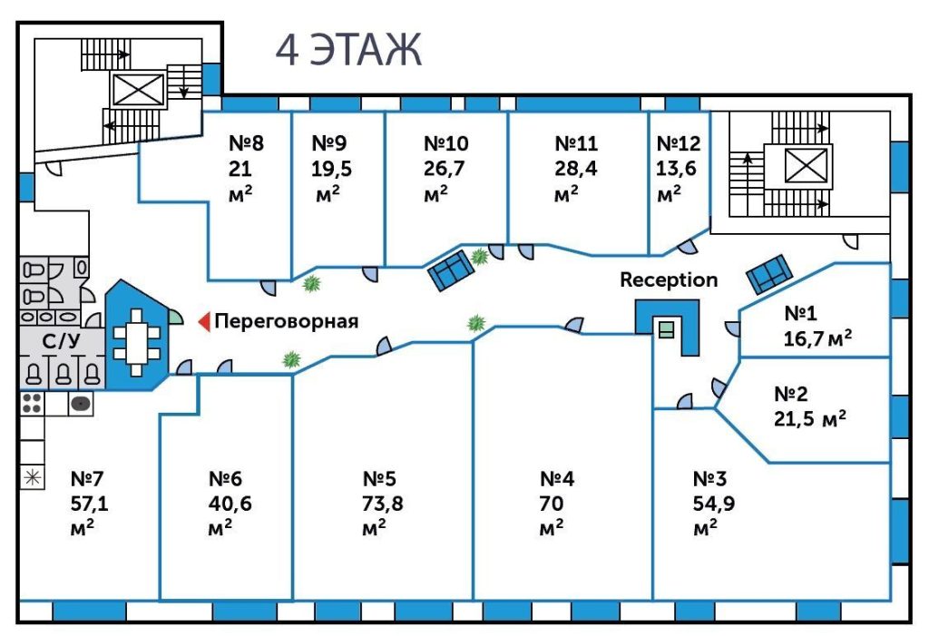 офисные помещения, Кривоколенный,12 - 553 м²,